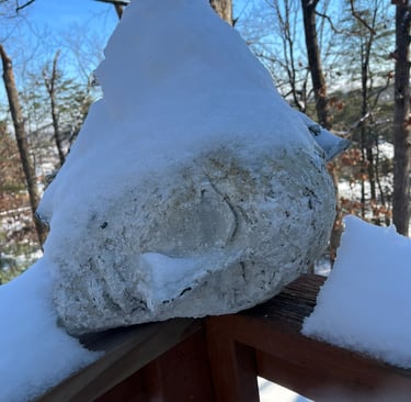 The head looks LOVELY on my deck railing, especially covered with snow.