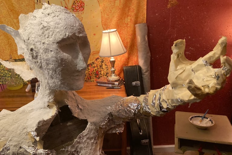 Though I have always enjoyed artistic projects, I have rarely tried to create Art, and when I have, I was too hard on and disappointed myself. Many times throughout this project, I hated aspects of her face and form and would waste hours trying to "fix" her and wind up just as disgusted or more.